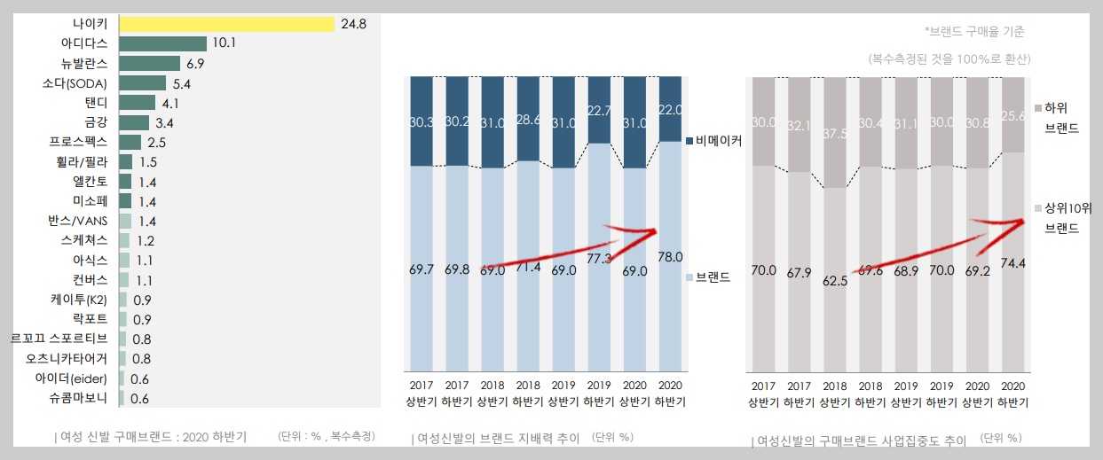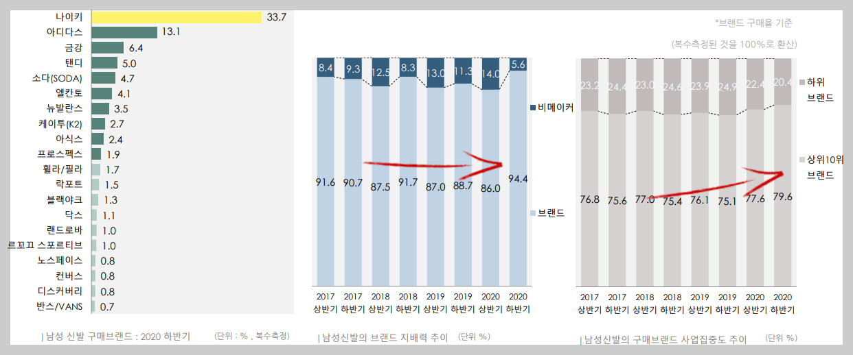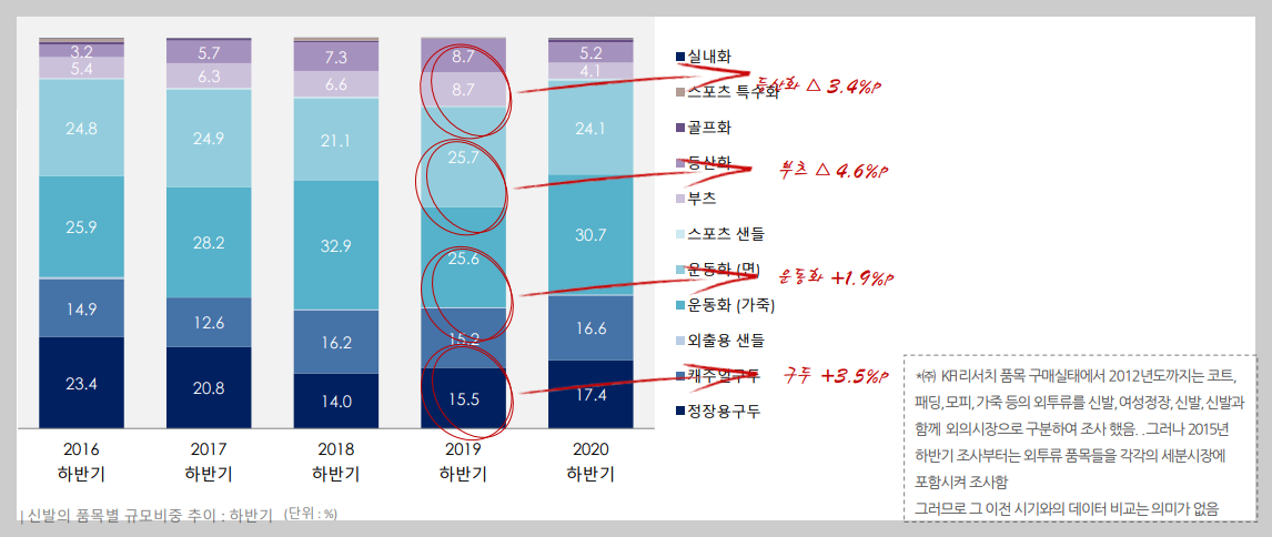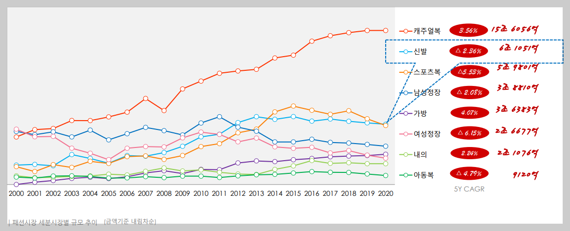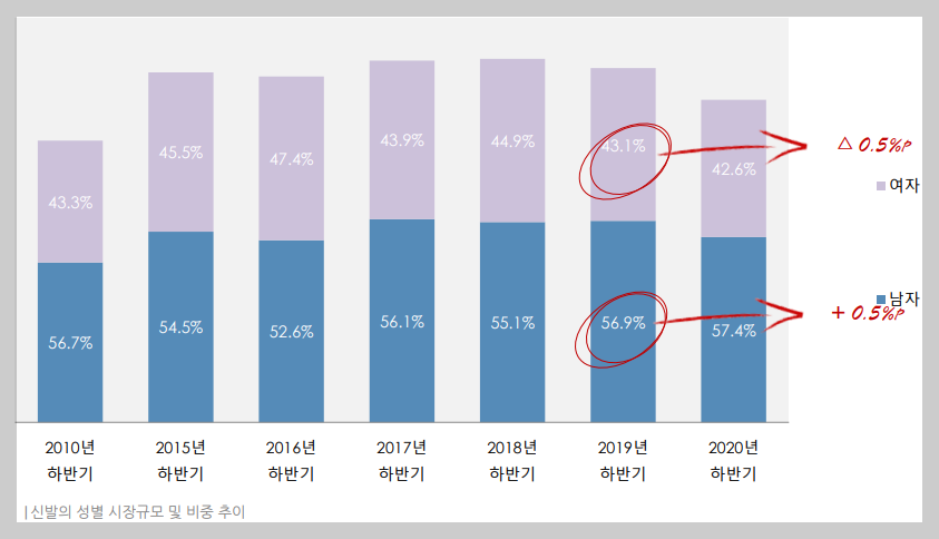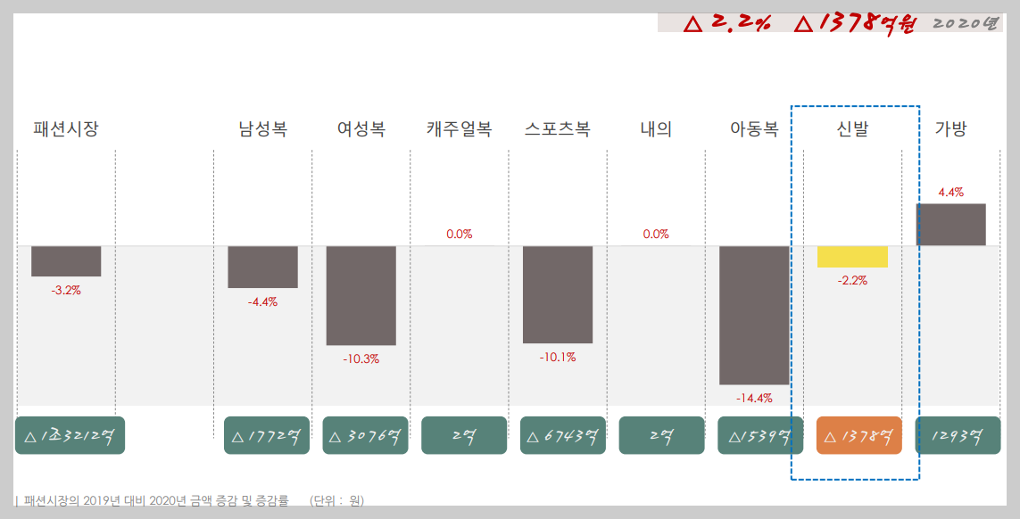 ◆ 신발 시장은 마이너스 2.2% 성장률, 시장 위축 지속