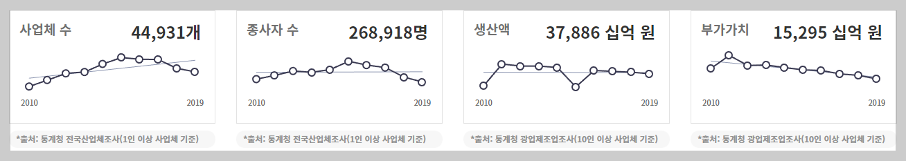 섬유패션산업은 2015년을 기점으로 수출보다 수입이 늘어나며 생산과 출하는 꾸준히 감소하고 재고만 쌓여가고 있습니다.