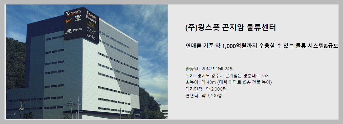윙스풋은 자체 물류센터인 광주 곤지암물류센터 구축으로 기존 3개 물류센터를 통합함으로써 인건비와 택배비, 물류비 등을 절감하고 있으며 또한, 한 곳에서 집중적으로 물류업무를 처리함으로써 관리가 수월해지고 생산성도 향상됐습니다.