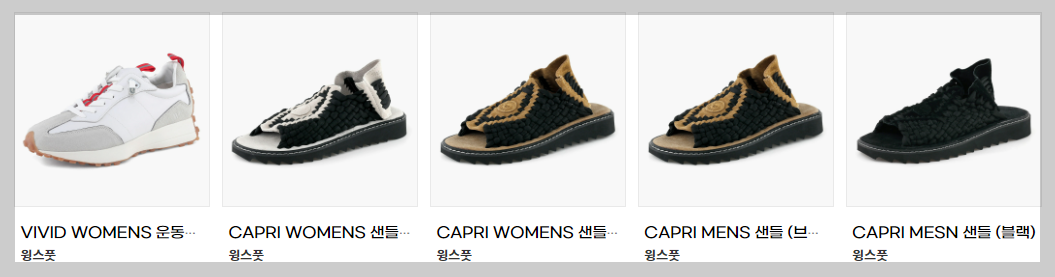 섬유, 의복, 신발 및 가죽제품 소매업 - 윙스풋 -