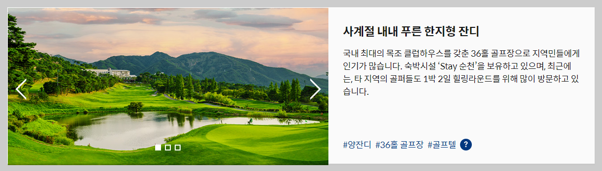 골프존카운티는 국내 최대 규모의 전국 18개 골프장을 전문적으로 운영하는 사업을 영위하고 있습니다. 티스캐너라는 전국 270여개 골프장의 실시간 예약 서비스 편리한 모바일&웹 서비스와 다양한 할인 혜택을 제공하는 쉽고 빠른 골프장 예약 플랫폼을 운영하고 있습니다.