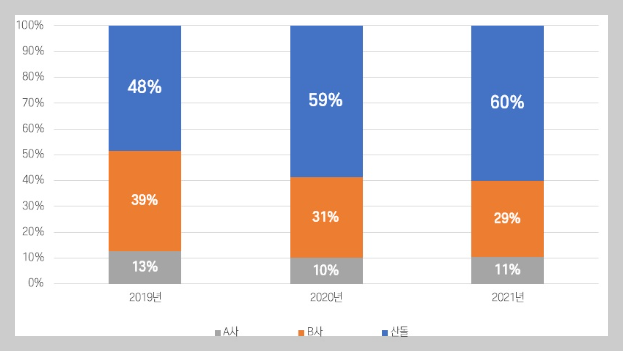 통신판매 | 4,658 | 65% | 6,941 | 68% | 8,462 | 70% | 4,714 | 42% |