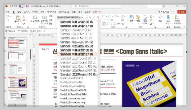 폰트 제작 사업은 제작을 의뢰하는 고객사의 요청에 따라 당사가 기업 전용 폰트를 제작하여 해당 폰트의 저작권과 이와 관련된 일체의 권리를 판매하는 사업입니다. 기업 전용 폰트는 제작 초기 단계부터 최종 납품까지 고객과의 지속적인 커뮤니케이션을 통해 고객의 요구 사항을 정확히 파악하고, 제작 과정에서 수시로 피드백을 주고 받은 후에 최종 완성되는 폰트를 납품합니다. 산돌은 폰트 제작과정에서 산돌이 보유하고 있는 전문지식과 노하우를 적극 활용하여 더 좋은 품질의 폰트를 제작하기 위해 노력하고 있으며, 이는 고객의 만족도를 높이고 있습니다.