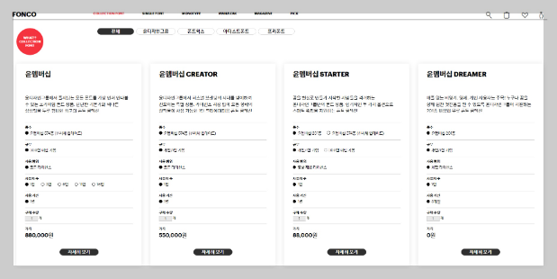 폰트 플랫폼 | 보유하고 있는 폰트 또는 외부 폰트제작사가 보유하고 있는 폰트를 월간 또는 연간 정액제 방식으로 구독형 서비스의 형태로 고객에게 제공하는 플랫폼 |