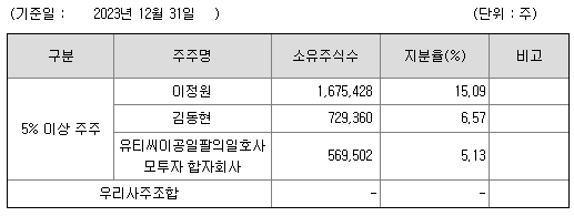 최대주주 | 이정원 | 최대주주 지분율 | 15.09 % |